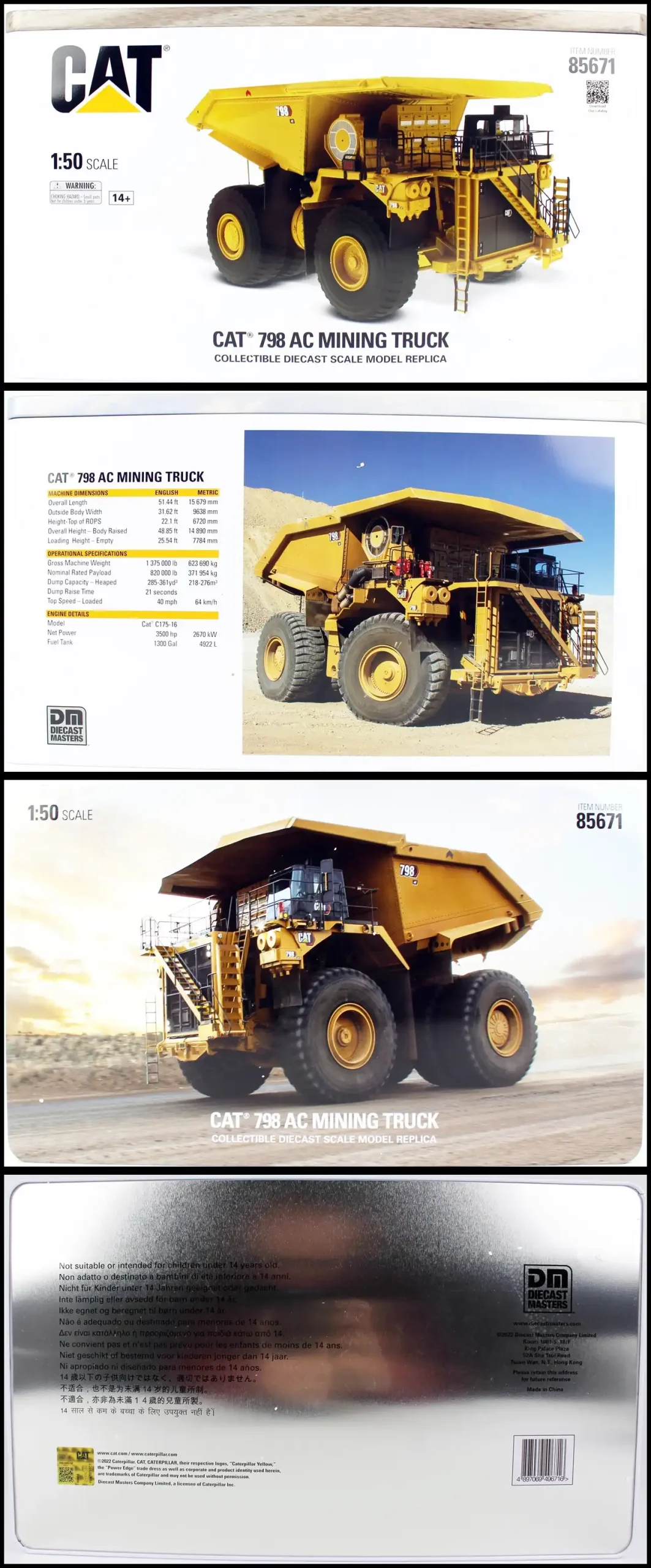 Diecast Masters, koleksiyon dünyasında premium kalite modelleriyle tanınan bir üreticidir. Cat 798 AC modelinde de gerçeğine sadık kalınarak en ince detaylar bile titizlikle işlenmiştir.