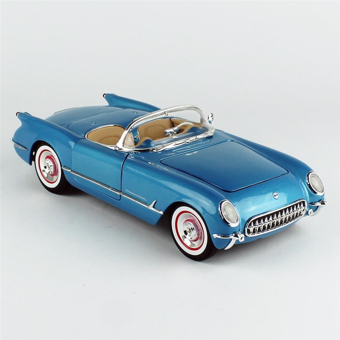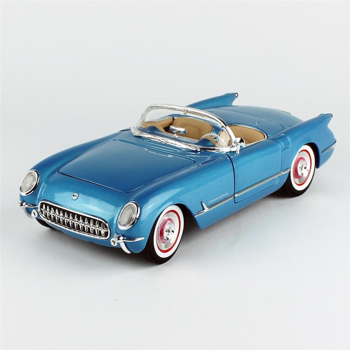 Diecast araç AutoWorld AMM1341 1/18 Ölçek, 1954 Chevrolet Corvette Convertible, Met.Br.Blue, Sergilemeye Hazır Metal Araba Modeli. Uzaktan kumandası yoktur. Gerçek aracın küçültülmüş halidir.