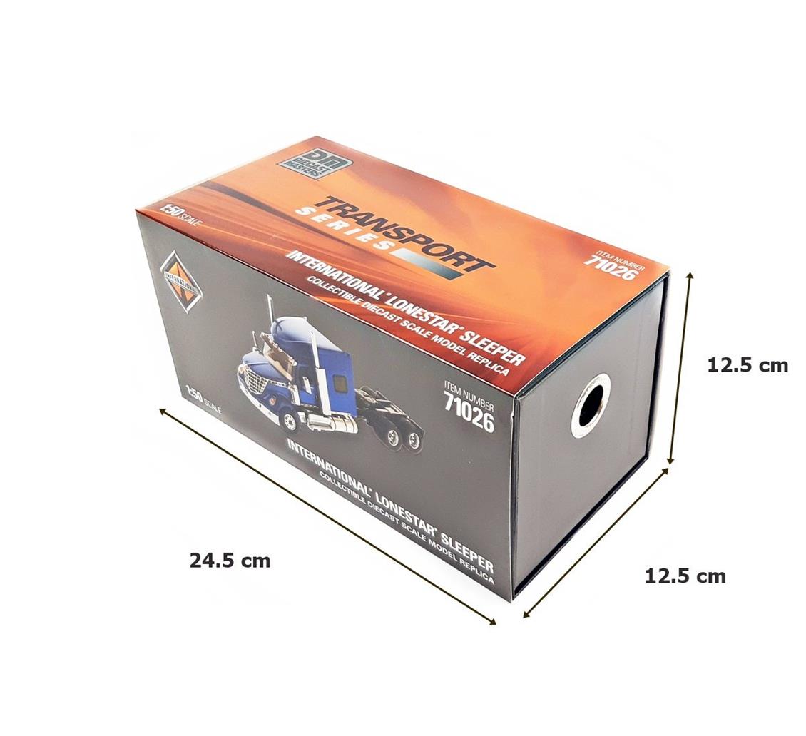 Diecast araç Diecast Masters 71026 1/50 Ölçek, International LoneStar Kabinli Çekici, Kapıları Açılır, Mavi, Sergilemeye Hazır Metal Model. Uzaktan kumandası yoktur. Gerçek aracın küçültülmüş halidir.